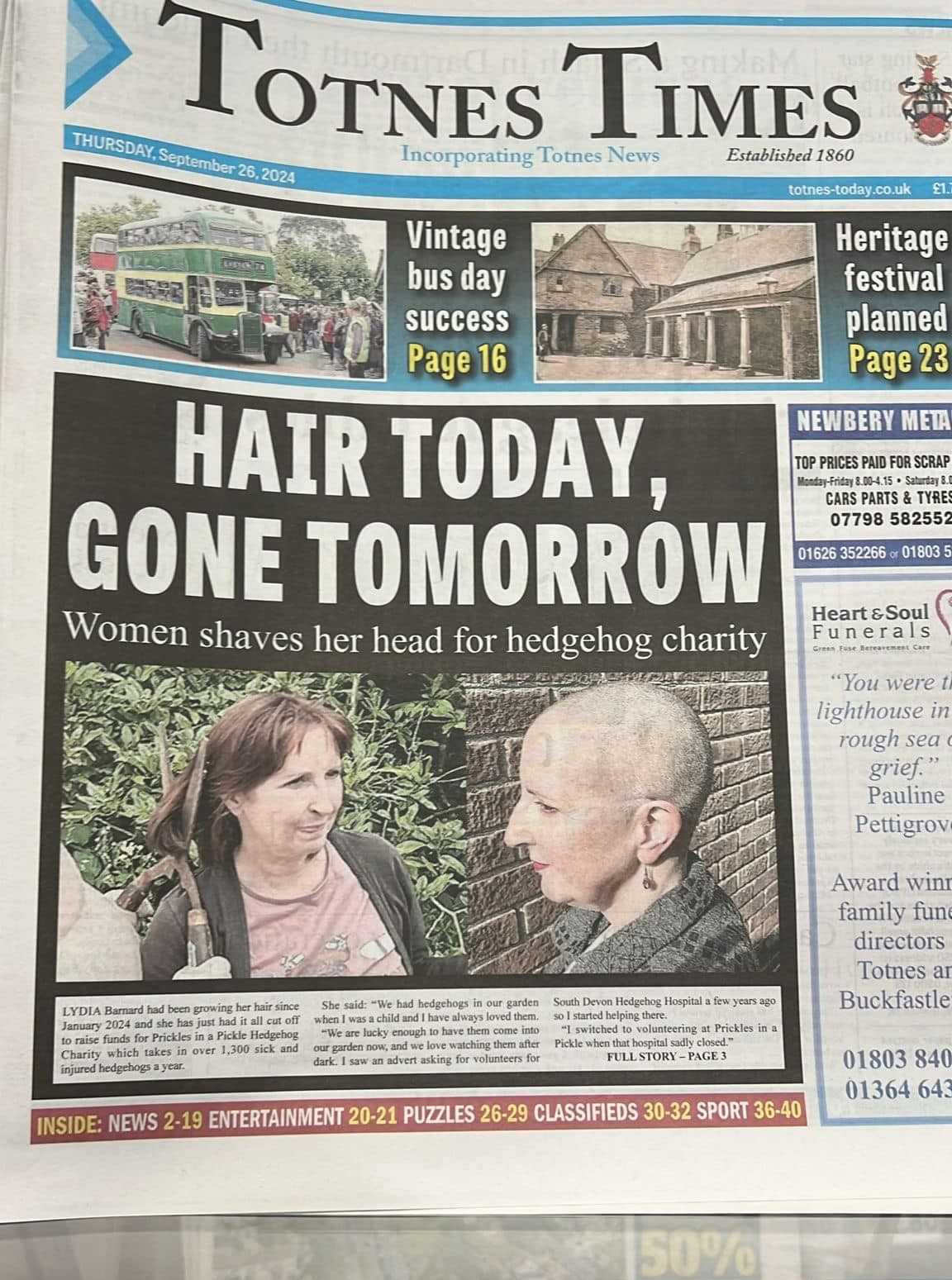 Wow! Thank you so much Lydia, bravely having your lovely hair shaved off has raised a magnificent sum for Prickles in a Pickle. Thank you very much to all those who gave so generously.